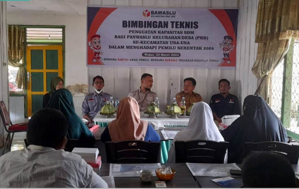 TOUNA – Dalam rangka menghadapi Tahapan Pemilihan Umum Tahun 2024, Panitia Pengawas Pemilihan Umum (Panwaslu) Kecamatan Una Una melaksanakan Bimbingan Teknis (Bimtek) Penguatan Kapasitas SDM bagi Panwaslu Kelurahan/Desa se- Kecamatan Una Una, Senin (20/3/23).