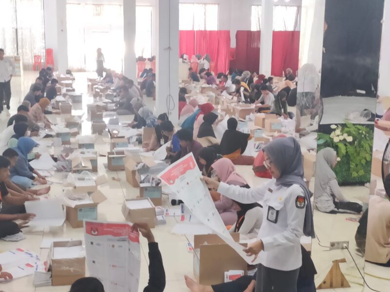 TOUNA – Di hari ketiga, Komisi Pemilihan Umum (KPU) Kabupaten Tojo Una-Una (Touna) melakukan tahapan sortir lipat surat suara pemilihan DPRD Provinsi Sulawesi Tengah (Sulteng), Senin (8/1/2024) yang berlangsung di Grand Pink Hotel Ampana