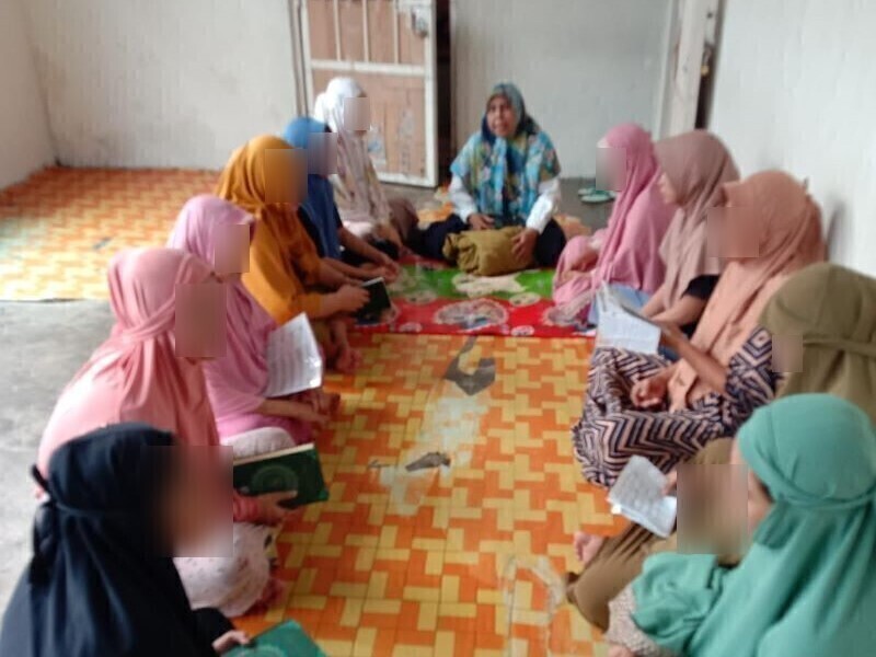 Pengajian dilaksanakan sebanyak tiga kali dalam seminggu dipandu oleh Ustadzah Hj. Nikma dengan memberikan bimbingan dalam membaca Al-Qur’an.