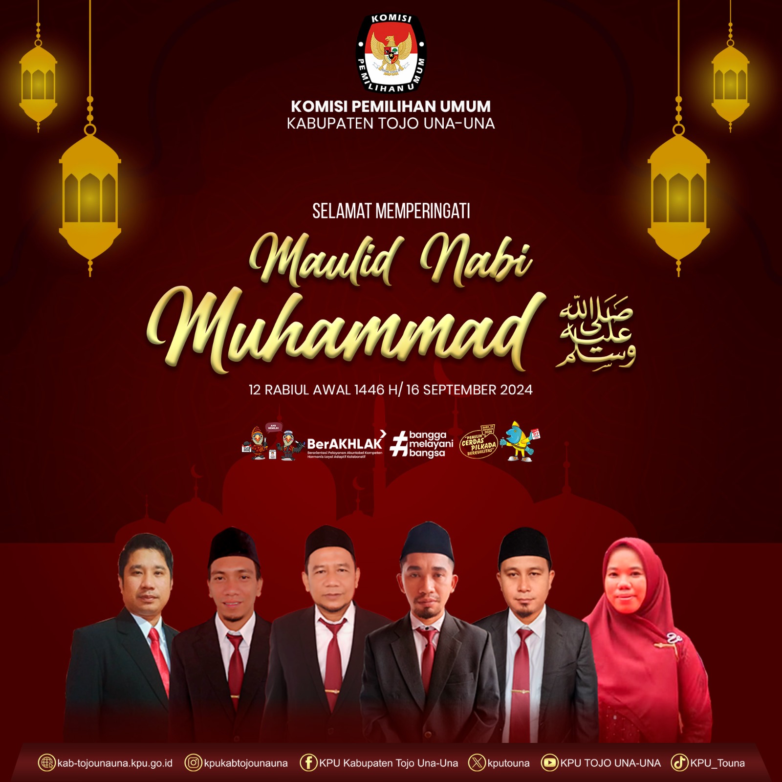 #TemanPemilih, segenap jajaran KPU Kabupaten Tojo Una-Una mengucapkan Selamat Memperingati Maulid Nabi Muhammad SAW