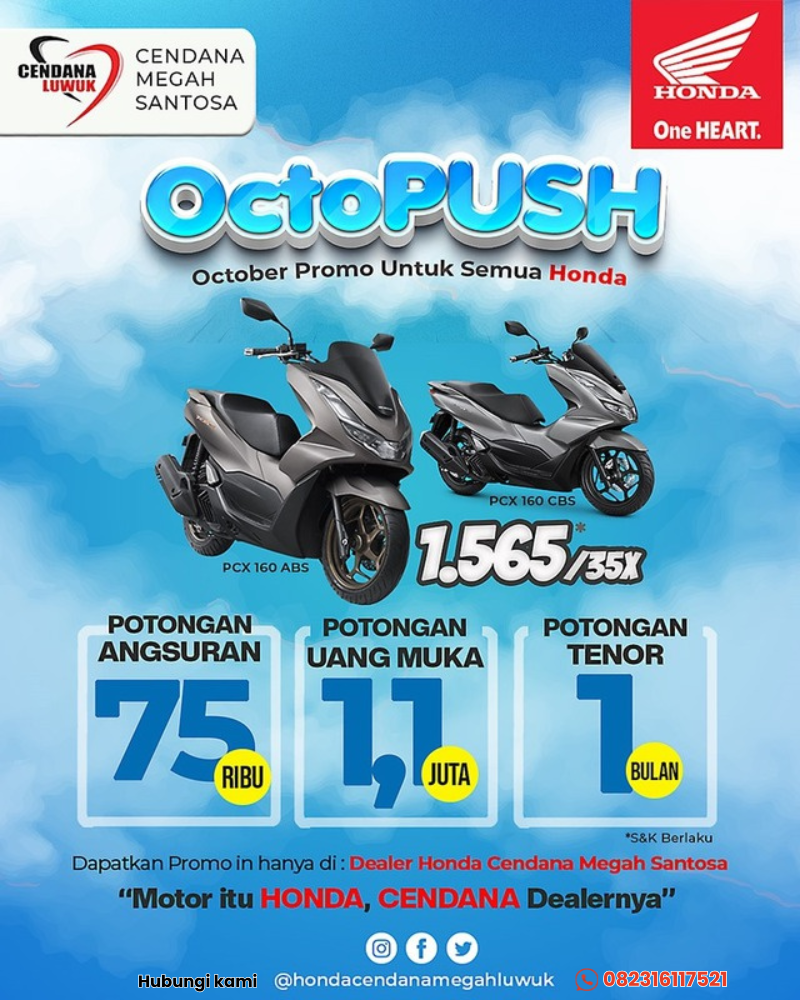Di bulan Oktober ini Honda Cendana , mengeluarkan Promo OctoPUSH “Oktober Promo Untuk Semua Honda”