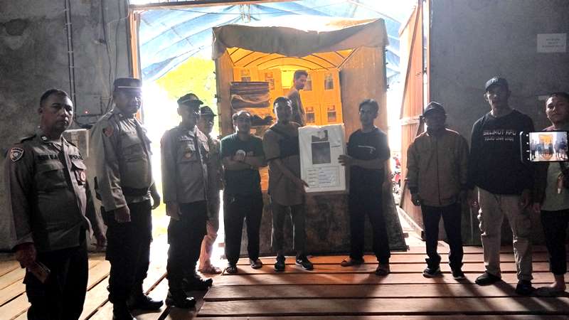 Penyerahan logistik yang dihadiri oleh Ketua PPK Ratolindo dan Ketua Panwascam Ratolindo di kawal langsung oleh Kapolsek Ampana Kota Iptu Maryanto bersama anggota pengamanan Sekretariat PPK Ratolindo.