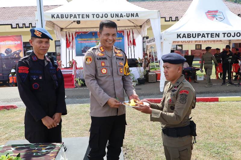 TOUNA – Kapolres Tojo Una Una (Touna) AKBP Ridwan J.M. Hutagaol, S.I.K., S.H. menghadiri acara syukuran Hari Ulang Tahun (HUT) Ke-79 Korps Brigade Mobil (Brimob) Kepolisian Negara Republik Indonesia.