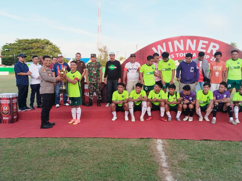TOUNA – Open Turnamen Sepak Bola Kapolres Touna Cup 2025 resmi ditutup oleh Kapolres Touna, AKBP Ridwan J.M. Hutagaol, SIK, SH di Lapangan Stamin Ampana, Kecamatan Ampana Kota, Kamis (27/2/2025).