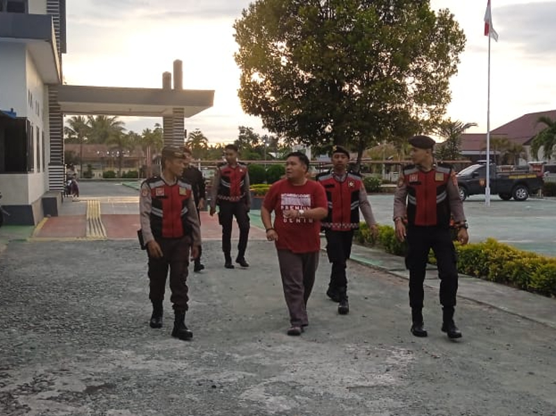Kedatangan Kanit Obvit Sat Samapta Polres Touna, Aipda Suandi bersama Anggota diterima oleh Kepala kesatuan Pengamanan Lapas Kelas IIB Ampana, Finley Edward Ruindungan, beserta Anggota Regu Pengamanan.