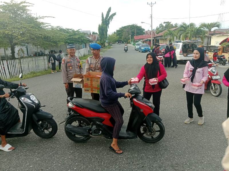 Pembagian takjil ini dipimpin langsung oleh Kapolsek Ampana Kota Iptu Maryanto bersama pengurus Ranting Bhayangkari dan Personil Polsek Ampana Kota.