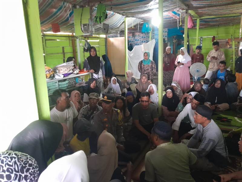 Tampak Kapolsek Iptu Rochmat bertemu dan berbincang- bincang dengan keluarga almarhuma dengan memberikan semangat untuk bersabar dan ikhlas atas meninggalnya salah satu keluarganya.