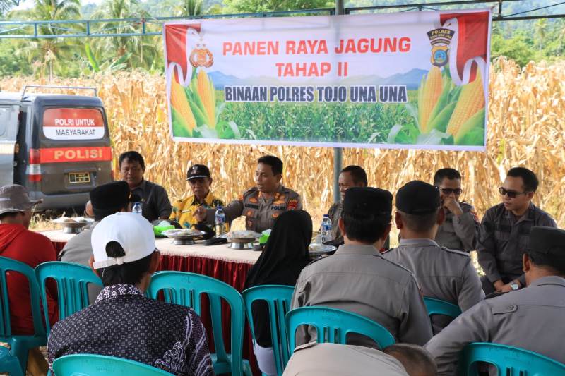 TOUNA – Polres Tojo Una Una melaksanakan kegiatan Panen Raya Jagung Tahap II Binaan Polres Tojo Una Una, di Desa Sabulira Toba, Kecamatan Ratolindo, Kabupaten Tojo Una Una, Kamis (08/05/2025).