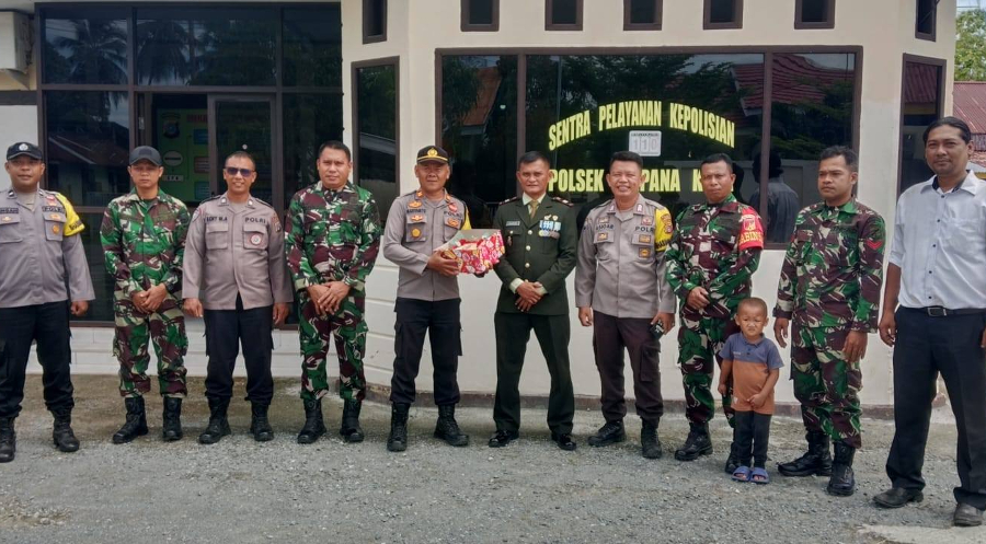 Kunjungan tersebut bertujuan untuk memberikan kado ulang tahun dan ucapan selamat kepada personel Polsek Ampana Kota sebagai bentuk sinergitas TNI dengan Polri.