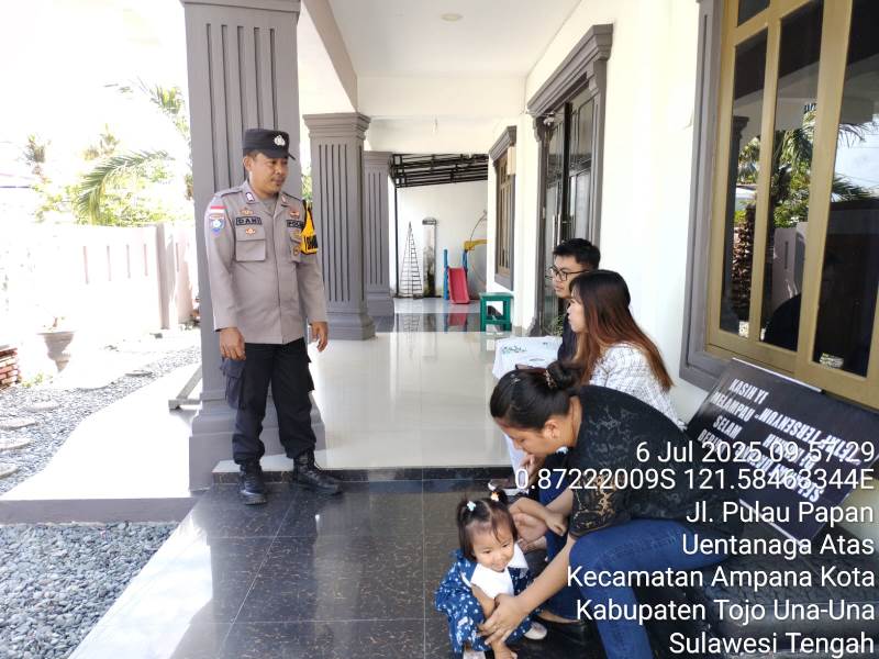 TOUNA – Jajaran personel Bhabinkamtibmas Polsek Ampana Kota melaksanakan kegiatan Minggu Kasih dan memberikan himbauan Keamanan dan Ketertiban Masyarakat (Kamtibmas) di Gereja GKII Ampana, Jalan Pulau Papan, Kelurahan Uentanaga Atas, Kecamatan Ratolindo, Minggu (6/7/2025)