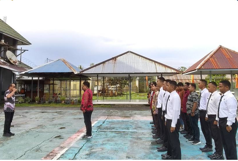 Bertindak sebagai Pembina apel pagi, Kepala Lembaga Pemasyarakatan Kelas IIB Timika, Mansur Yunus Gafur, S.H., M.H