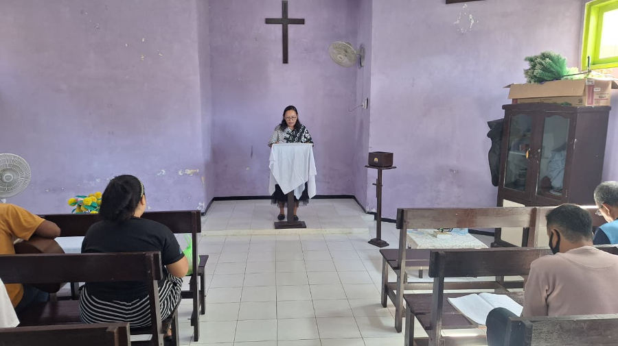 Ibadah ini digelar di Gereja Oikumene Lapas Ampana pada hari Rabu (13/8/2025) pukul 09.00 WITA, dipimpin oleh Ibu Margaretha Hokey, S.Kom, dari Bimas Kristen Kementerian Agama Kabupaten Tojo Una-Una.