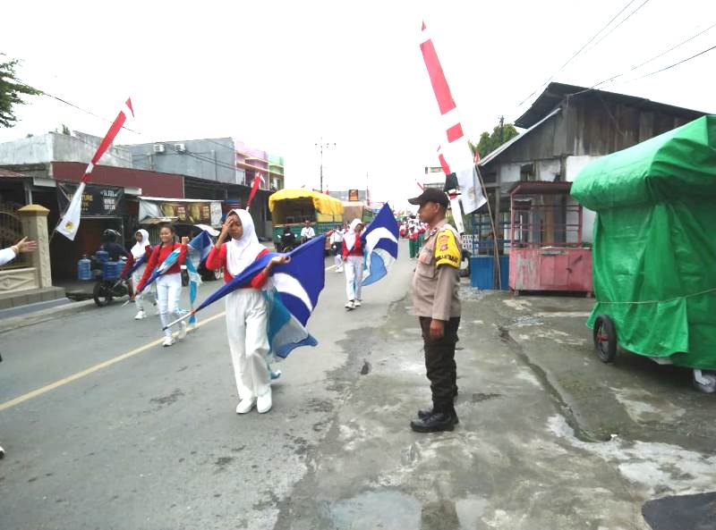 Personel Polsek Ampana Kota dan Satuan Lalu Lintas (Satlantas) Polres Touna berkolaborasi mengamankan seluruh rangkaian acara yang diikuti oleh ribuan peserta.