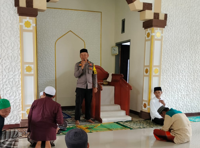 Kapolsek Ampana Kota usai salat Jumat memberikan himbauan kamtibmas dan mengajak para jamaah pentingnya kewaspadaan terhadap maraknya tindak kejahatan berbasis digital yang belakangan ini kian meningkat.