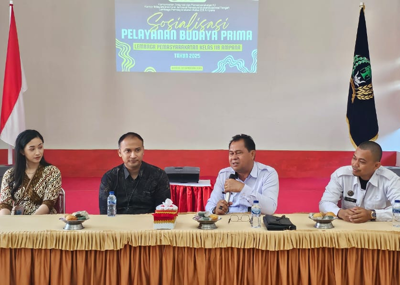 TOUNA – Lembaga Pemasyarakatan (Lapas) Kelas IIB Ampana bekerjasama dengan Bank Rakyat Indonesia (BRI) Cabang Ampana menggelar Sosialisasi Pelayanan Budaya Prima, Selasa (2/9/2025).