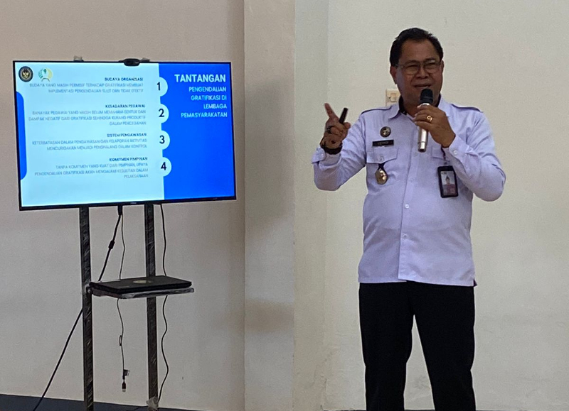 Dalam materinya, Kalapas Luther Toding Patandung mendorong partisipasi aktif seluruh pegawai dalam mendukung upaya pencegahan gratifikasi.