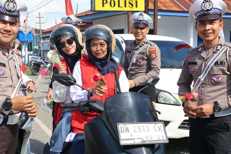 Sebagai bentuk apresiasi, Satlantas juga membagikan 100 tangkai bunga kepada para pengendara yang sudah tertib berlalu lintas. Bunga ini diberikan kepada mereka yang telah melengkapi diri dengan helm dan kelengkapan kendaraan lainnya, menjadi simbol ucapan terima kasih atas ketaatan mereka.
