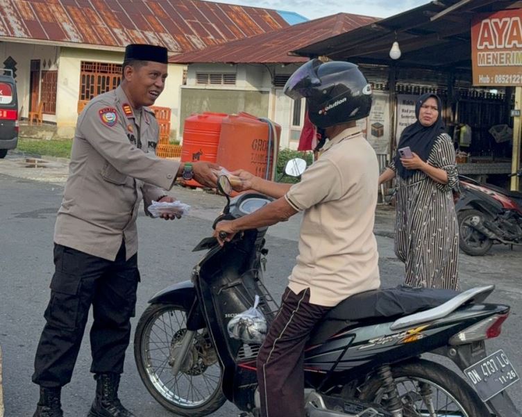 Selain berbagi, momen ini juga dimanfaatkan untuk menyampaikan imbauan keselamatan berlalu lintas kepada pejalan kaki maupun pengendara.