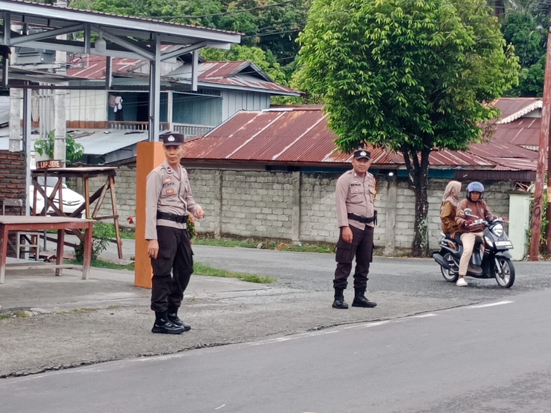 Pada Senin (27/10/2025), Personel Polsek Ampana Kota Aipda Saiful H bersama Aipda I Made Rai Eliyasa dan Aipda Komang Budiasa, SH melakukan pengaturan lalu lintas di depan SMP Negeri 1 Ampana Kota dan SD Negeri 1 Ampana Kota.