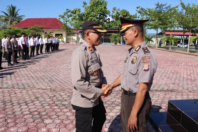 “Saya atas nama pimpinan mengucapkan selamat dan sukses kepada Kompol Ngatimin yang hari ini mendapatkan anugerah kenaikan pangkat pengabdian,” ujar Kompol Mulyadi.