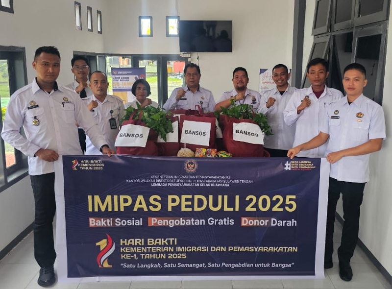 TOUNA – Dalam rangka menyambut Hari Bhakti Kementerian Imigrasi dan Pemasyarakatan (Kemenimipas) ke-1 Tahun 2025, Lembaga Pemasyarakatan Kelas IIB Ampana menggelar kegiatan bakti sosial bertajuk Imipas Peduli, Rabu (12/11/2025).