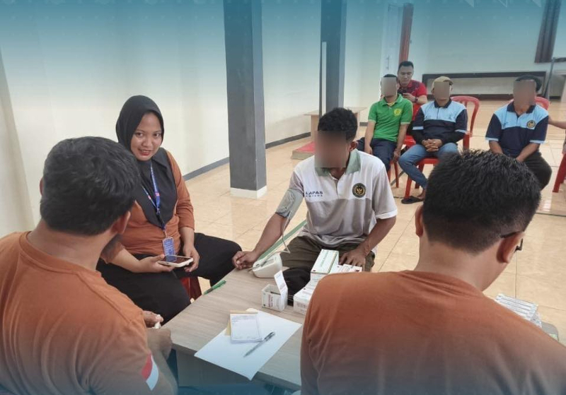 Pemeriksaan kesehatan gratis yang berlangsung di Aula Sivia Patuju Lapas Kelas IIB Ampana, Jumat (14/11/2025) diikuti oleh Pegawai dan Warga Binaan Pemasyarakatan.
