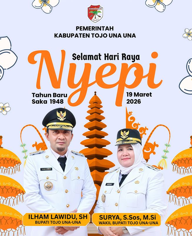 TOUNA – Bupati Tojo Una Una, Ilham Lawidu bersama Wakil Bupati Hj. Surya menyampaikan ucapan selamat Hari Raya Nyepi kepada seluruh umat Hindu.